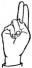 На ћирилици написано ВУКОСАВ ПОПОВИЋ састоји се из 14 слова [?]. Исписано ћириличном једноручном азбуком за глувонеме: